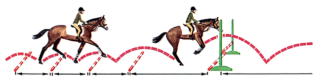 這種訓(xùn)練對(duì)節(jié)奏和平衡是個(gè)很好的測(cè)試。騎手必須確保馬從快步桿的中央到達(dá)障礙,并且馬是正直的。這時(shí)沒有交叉桿來保持馬在障礙欄的中間跳越,所以要依靠騎手。馬必須保持一個(gè)好的節(jié)奏、平衡和推進(jìn)力,在整個(gè)訓(xùn)練中都必須保持這樣。馬不能失去推進(jìn)力,但同時(shí)騎手也不能催促馬,馬應(yīng)不慌不忙平衡地跳越,不是用力猛沖跳越。