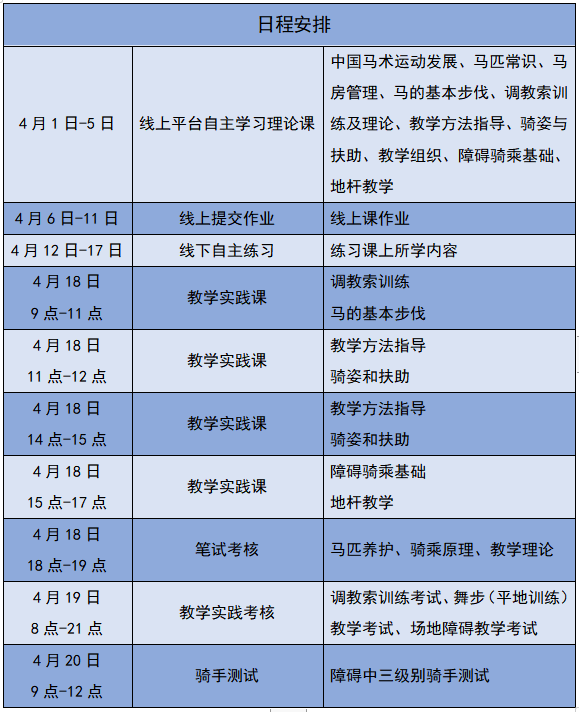 (三)線(xiàn)下輔導(dǎo)和實(shí)踐考核:2022年4月18日-20日,在北京騎緣國(guó)際馬術(shù)俱樂(lè)部進(jìn)行線(xiàn)下集中輔導(dǎo)與實(shí)踐考核。