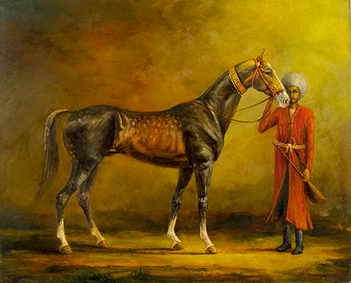 伊杉古力是土庫曼斯坦當代以畫馬著名的油畫家,其畫馬作品多以阿哈爾捷金馬為題材,構(gòu)思巧妙,造形準確,色調(diào)渾厚,作品無不體現(xiàn)畫家對馬細致入微的觀察和濃濃的感情。