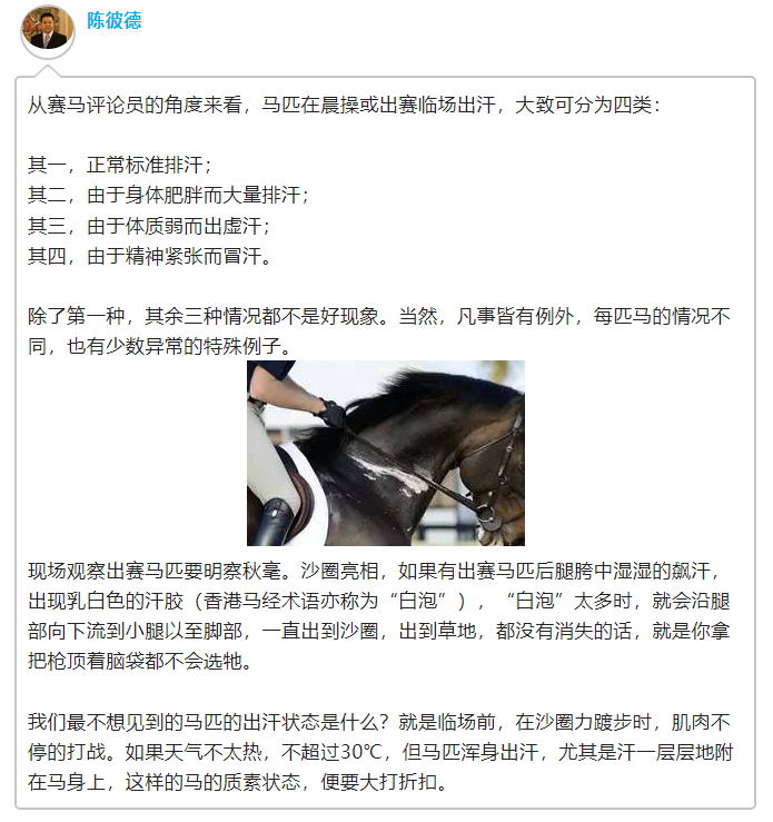 問:為何有些馬匹晨操或臨場出賽大汗淋漓?