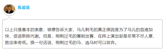 問:剃了毛的賽駒又表現(xiàn)如何呢?