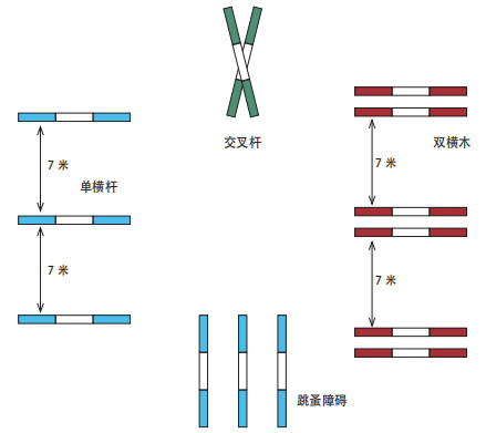 “我訓(xùn)練所有的馬都用同一個(gè)基本的體操布置。我連續(xù)擺放三個(gè)單橫木,然后在另一條線上再連續(xù)擺放三個(gè)雙橫木。各障礙間距為7米。另外,我在一邊擺一個(gè)交叉桿,在另一邊再擺一個(gè)跳蚤障礙(連續(xù)一步一跳的交叉桿組)。交叉桿用來熱身。然后,我輪流跳單橫木關(guān)系障礙和雙橫木關(guān)系障礙,且經(jīng)常變換里懷。我沒有一個(gè)固定的路線。目的是更多地讓馬習(xí)慣在固定的距離上重復(fù)練習(xí),且學(xué)會(huì)在起跳前和落地后掌握他們的平衡。我不在這些關(guān)系障礙的基礎(chǔ)上再加單獨(dú)的障礙,并把障礙的高度限制在110厘米以內(nèi)。這個(gè)練習(xí)我一般一周做一到兩次,根據(jù)比賽來計(jì)劃。但是在我騎年輕馬或剛加入我的馬房的馬時(shí),在他們沒有完全熟悉這個(gè)路線之前,只練這個(gè)不練別的。”
