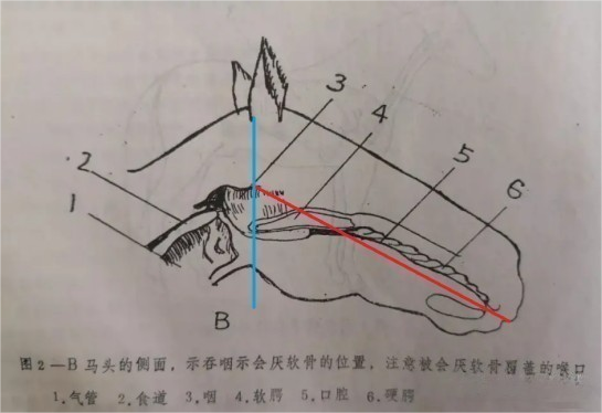 (3)到達(dá)第一處標(biāo)示時(shí),觀察馬是否有吞咽動(dòng)作。有,則成功進(jìn)入食管;無(wú),則重新進(jìn)行上述操作。