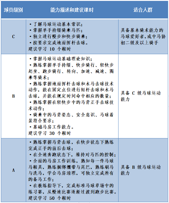 中國馬術(shù)協(xié)會(huì)馬球球員評(píng)級(jí)設(shè)置