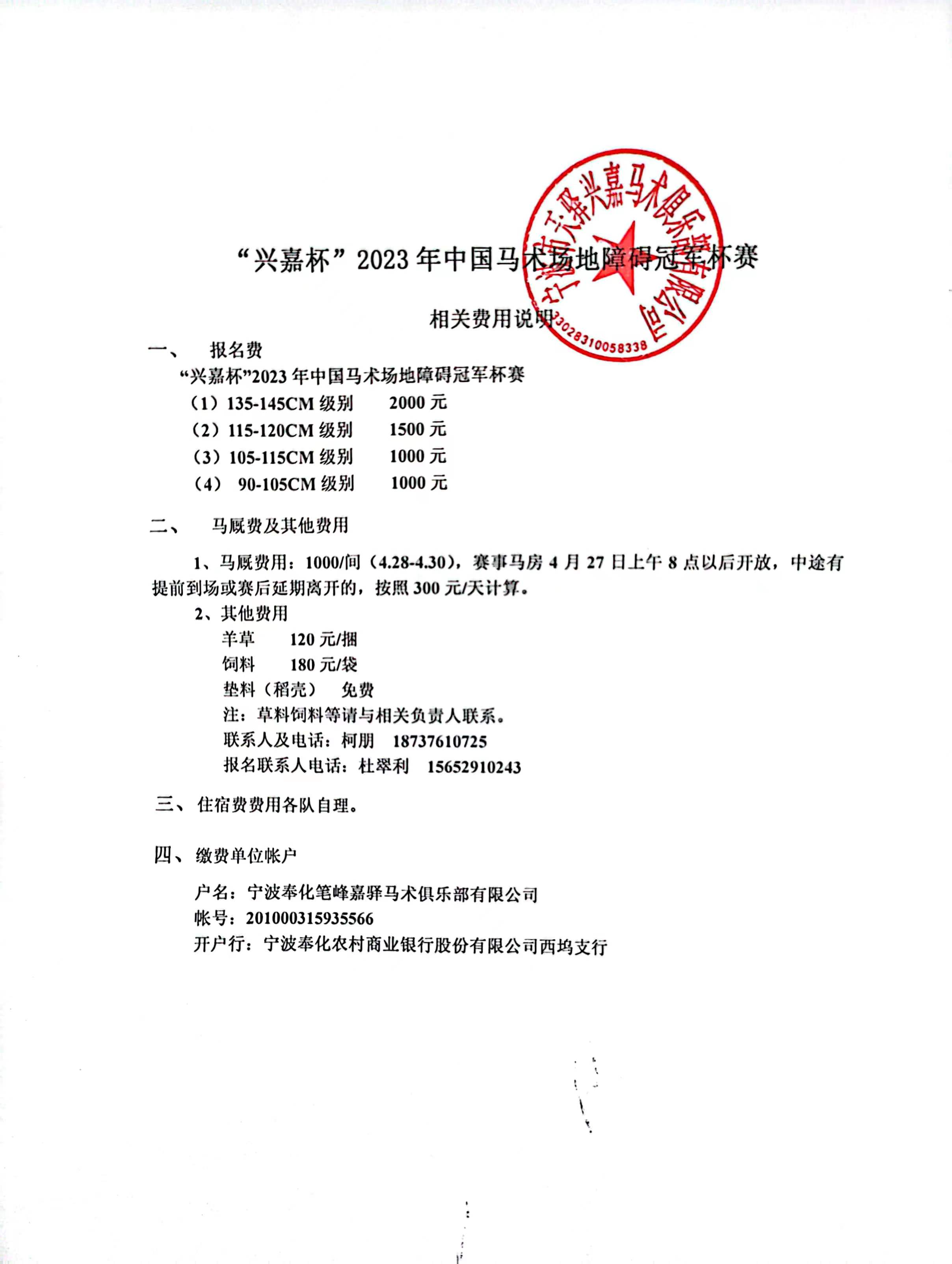 “興嘉杯”2023年中國(guó)馬術(shù)場(chǎng)地障礙冠軍杯賽將于2023年4月28日—4月30日在寧波市天驛興嘉馬術(shù)俱樂(lè)部舉辦。為使比賽順利進(jìn)行,現(xiàn)將賽事有關(guān)事宜通知如下:
