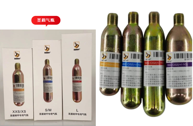 不同尺碼的護(hù)甲需要的安全氣壓是不同的,為保證護(hù)甲充氣后的安全效果,每件即時(shí)充氣護(hù)甲都有標(biāo)配的圣盾氣瓶。
