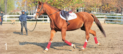 圖1中,正在給馬匹做打圈練習(xí)。馬主或者騎手有時(shí)候太過(guò)于追求安全和平穩(wěn)。圖中打圈練習(xí)的動(dòng)作都很準(zhǔn)確,但是看看這匹馬,它好像只能一直持續(xù)做這一個(gè)動(dòng)作而已,是時(shí)候讓它走出“舒適區(qū)”了。