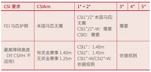 CSI各星級賽事的基本參賽規(guī)則如下(多種情況下的變通原則請翻看規(guī)則附錄V):