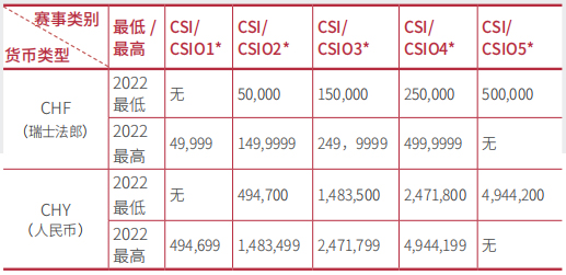 * 該表格提取自FEI官網(wǎng)官方文件《Final CSIs-CSIOs-2022》,文件中提供了各國貨幣,非實時匯率換算。(馬術雜志)