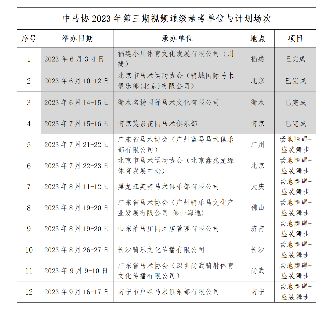 中馬協(xié)關(guān)于公布第三期視頻通級考核計劃的通知