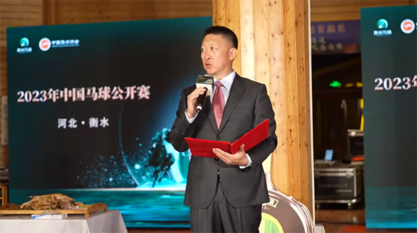 在2023年中國馬球公開賽歡迎晚宴上做開場致辭