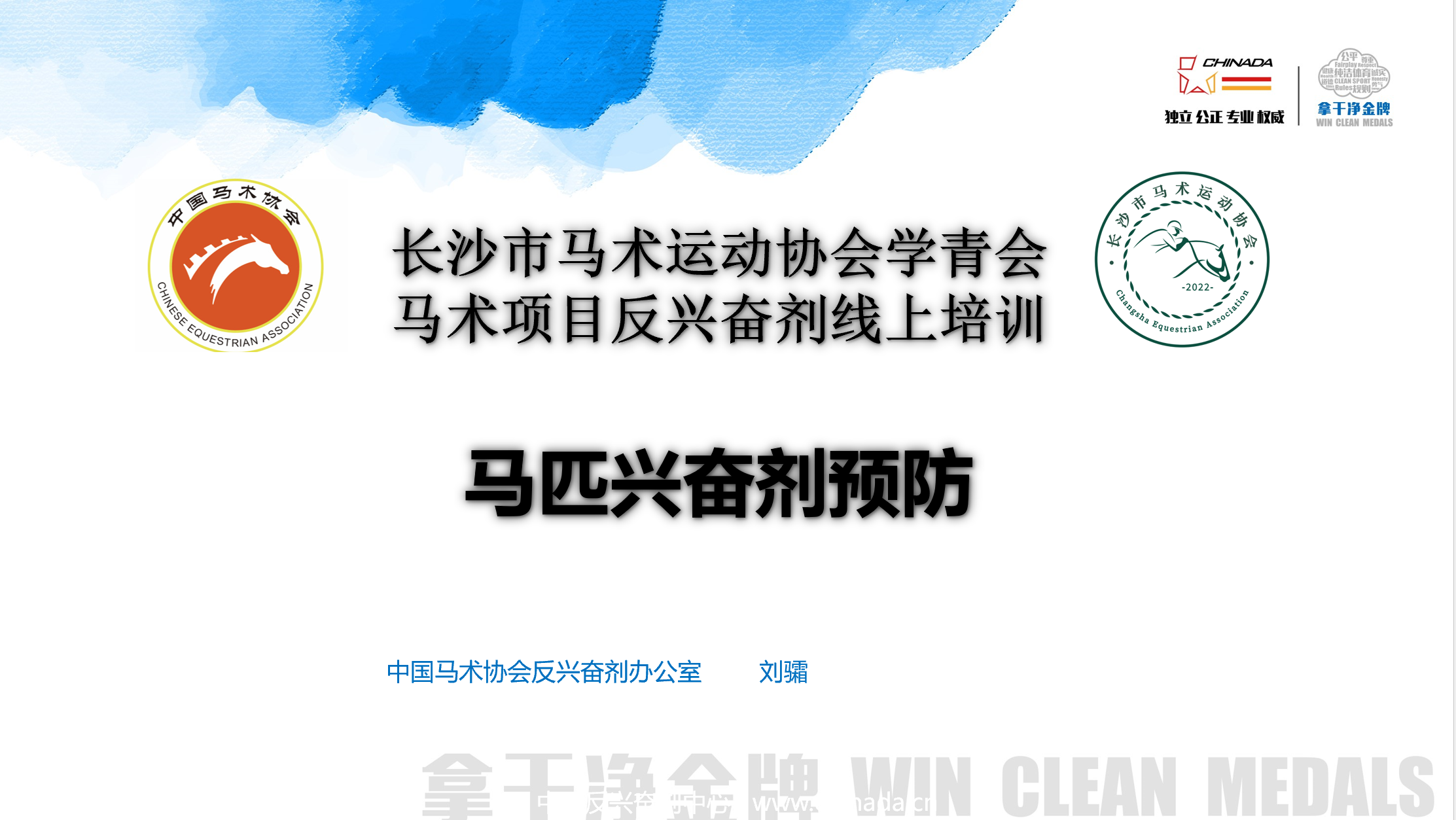為貫徹落實體育總局關(guān)于第一屆全國學生(青年)運動會(學青會)反興奮劑工作要求,完善管理措施,確保興奮劑問題“零出現(xiàn)”,2023年10月5日,受長沙市馬術(shù)運動協(xié)會委托,中國馬術(shù)協(xié)會委派反興奮劑部副部長劉骦同志,為湖南長沙隊進行了馬匹反興奮劑線上培訓。