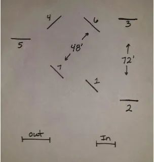 障礙2和障礙3之間的距離為72英尺(約22米),障礙6和障礙7之間的距離為48英尺(約15米)。