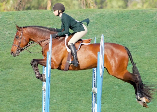 一般來(lái)講,我不喜歡在馬匹跳躍的時(shí)候采用此騎坐方式,或者將它作為默認(rèn)的騎坐方式。通常一節(jié)馬術(shù)課需要在半騎坐或者輕騎坐過(guò)程中來(lái)完成,這樣馬匹可以更自由的向前,同時(shí)騎手的參與度可以減到最少。當(dāng)然,也有一些馬,例如對(duì)你的腿的扶助反應(yīng)較遲鈍的馬或者較冷血的馬(不是純血馬),需要更多的扶助,這個(gè)過(guò)程中就需要坐的更深。