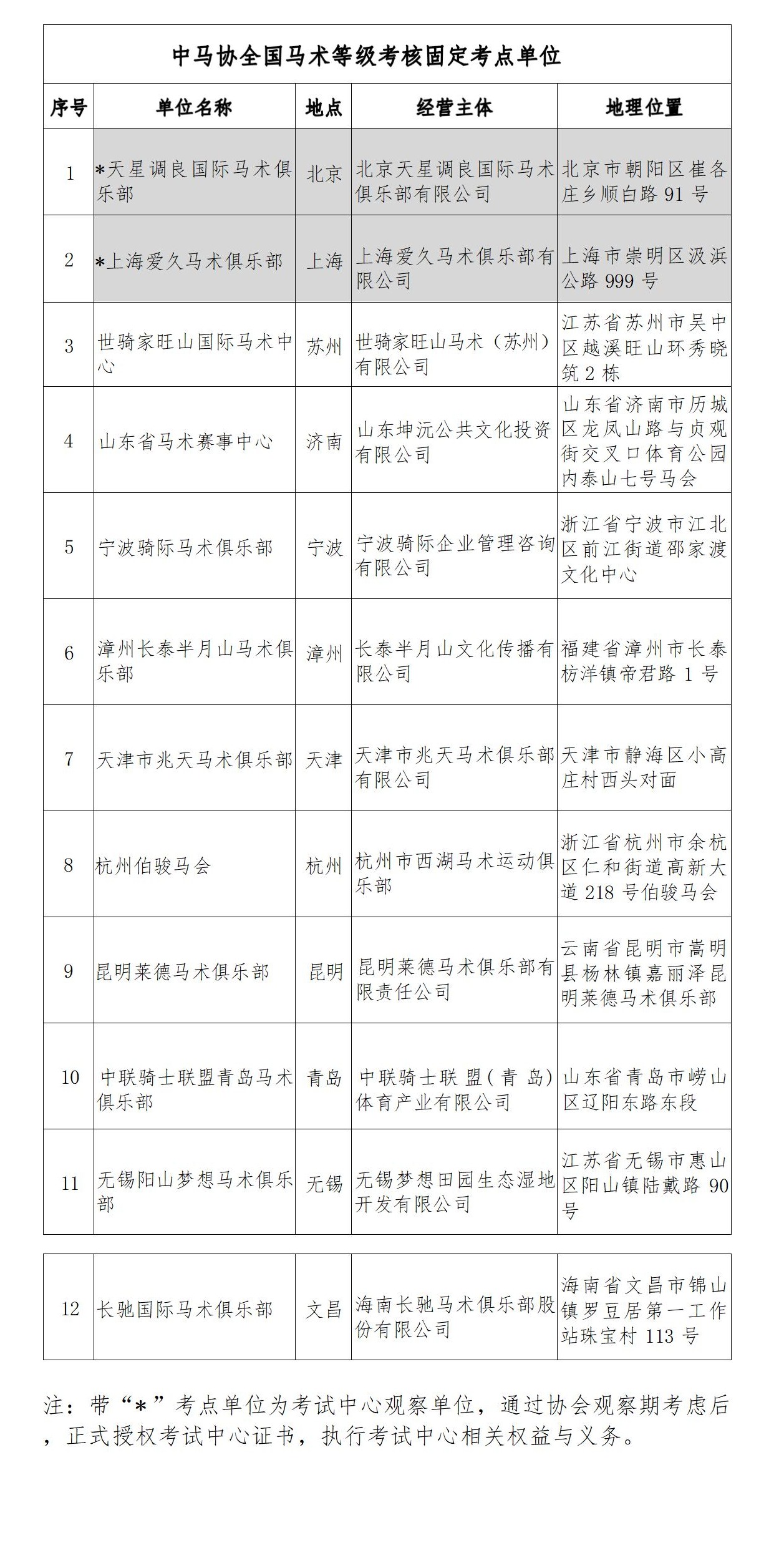中馬協(xié)關(guān)于公布全國馬術(shù)等級考核固定考點(diǎn)的通知