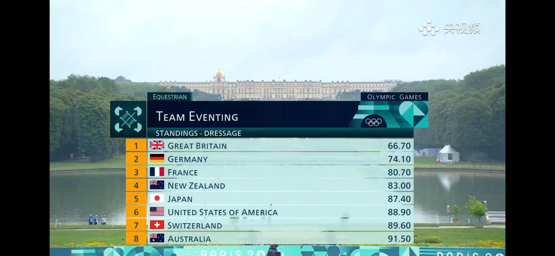 首項盛裝舞步賽后,暫居巴黎奧運會馬術(shù)三項賽個人排行榜前三位的人馬組合分別來自英國、德國和中國,澳大利亞并列第三。英國暫居團體成績榜第一位、德國和新西蘭國分列第二和第三位。