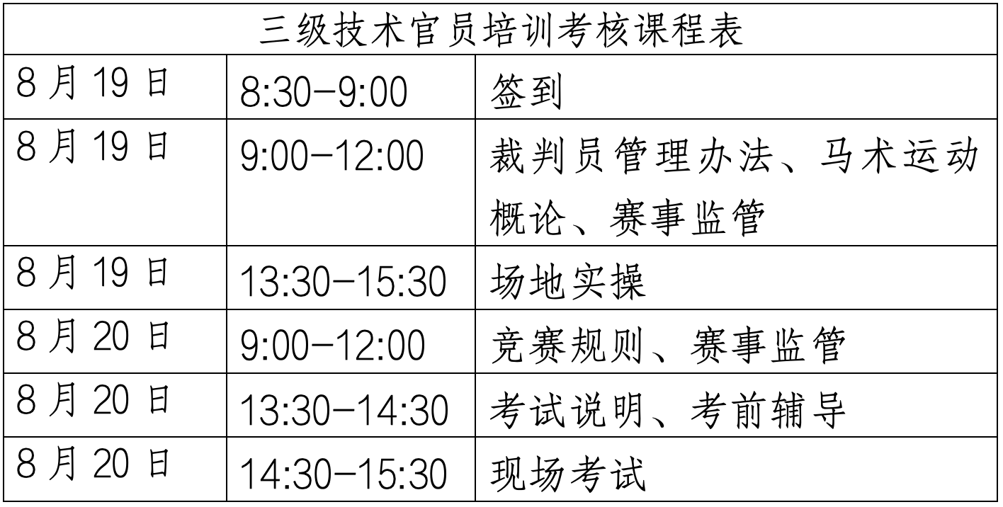 中馬協(xié)關(guān)于在寧波舉辦場(chǎng)地障礙三級(jí)技術(shù)官員培訓(xùn)考核的通知