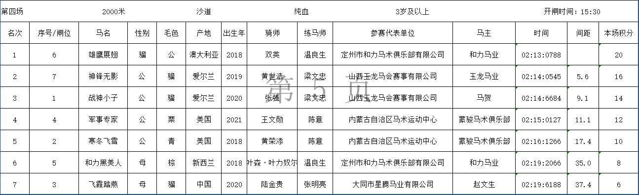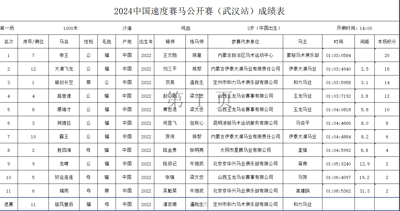 2024中國(guó)速度賽馬公開(kāi)賽(武漢站)成績(jī)表