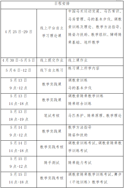 (三)線下輔導(dǎo)和實踐考核:2025年5月13日-15日,在逐夢馬術(shù)俱樂部進行線下集中輔導(dǎo)與實踐考核。