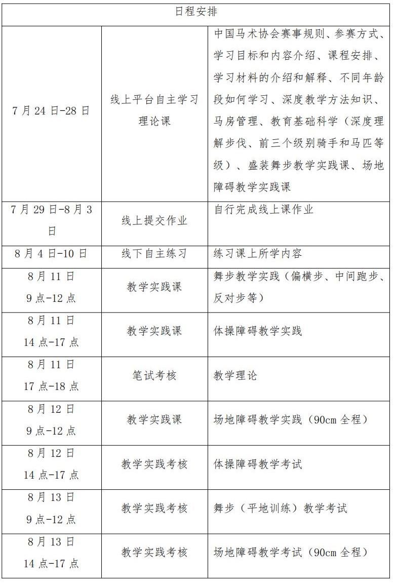 (三)線下輔導(dǎo)和實(shí)踐考核:2025年8月11日-13日,在東郊青青馬術(shù)俱樂部進(jìn)行線下集中輔導(dǎo)與實(shí)踐考核。