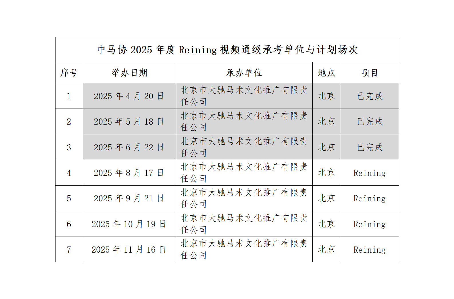 中馬協(xié)關(guān)于公布馬術(shù)Reining項目2025年度視頻通級考核計劃的通知