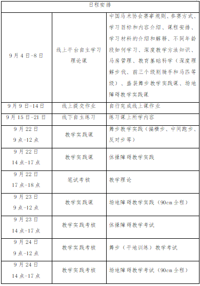 (三)線下輔導(dǎo)和實(shí)踐考核:2025年9月22日-24日,在天津市兆天馬術(shù)俱樂部進(jìn)行線下集中輔導(dǎo)與實(shí)踐考核。