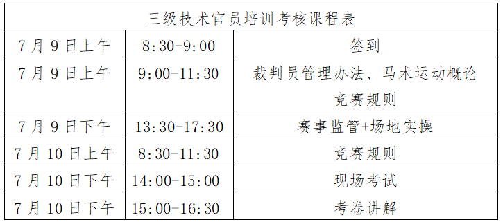 根據(jù)馬術專業(yè)人才培養(yǎng)計劃,我協(xié)會將于2021年7月9日-10日在海瀾國際馬術俱樂部舉辦三級技術官員培訓考核活動,合格者授予中國馬術協(xié)會相應等級技術官員證?,F(xiàn)就本次培訓考核相關事宜通知如下: