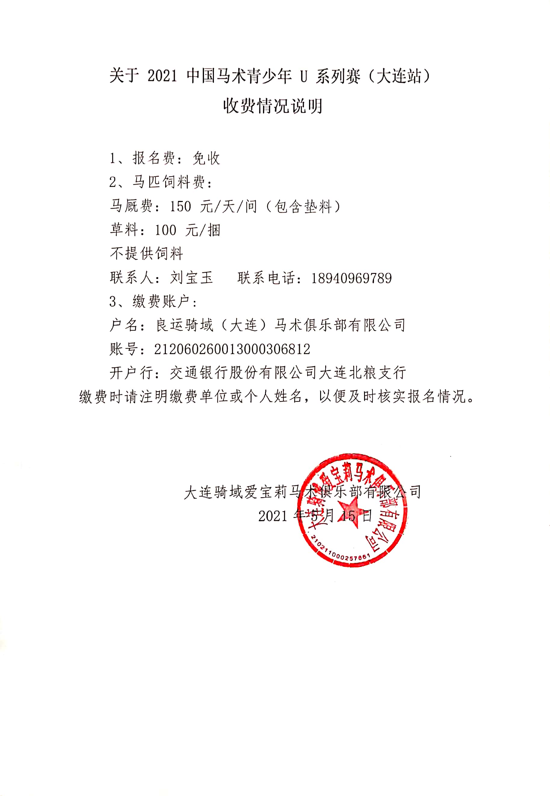 2021年中國馬術(shù)青少年U系列賽(大連)將于2021年7月24日至7月25日在大連市西崗區(qū)仲夏路61號(大連市公安局騎警基地)舉行。為使比賽順利進行,現(xiàn)將賽事有關(guān)事宜通知如下: