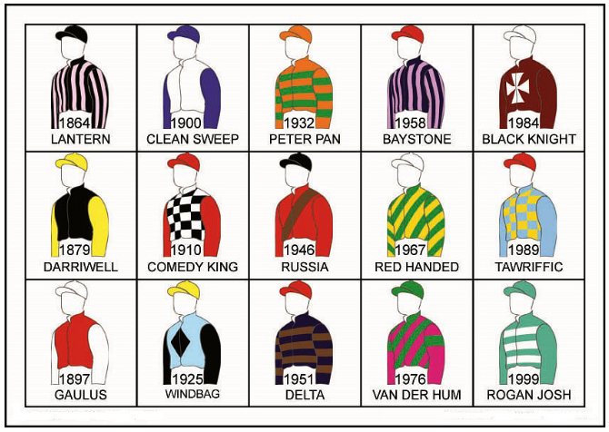 許多貴族、公爵賽馬家族的彩衣顏色、圖案組成都有著特別的蘊意,代表主人、騎師、純種馬的歷史、地位、血統(tǒng)。其既定顏色沿用至今。絲綢艷麗的顏色、輕薄的質地等特性應用到彩衣制作,也是騎師彩衣英文以Silk的緣由。韋瑟比公司主要負責純血馬的登記工作,公司于1791年出版第一本《純血馬族譜》,其后每四年更新一版。而公司的創(chuàng)立者詹姆斯.韋瑟比則是有著20余年擔任英國賽馬會秘書的經(jīng)歷。