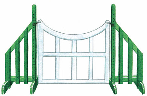 真正的窄障礙桿是白色的,底座是一雙腳一樣支撐的障礙架,在全程中它是很窄的障礙,這種障礙還可以做成磚墻、門狀或木板條形式。