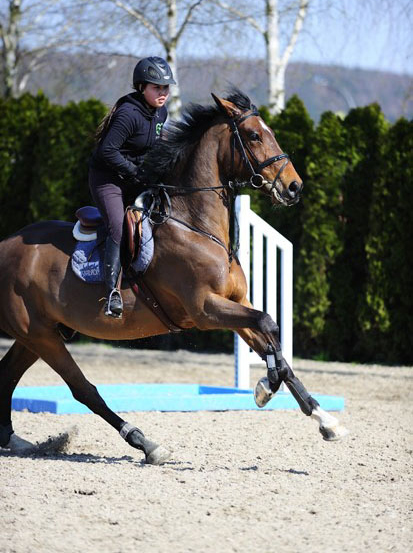 但如果你的馬匹很勇敢、喜歡要韁沖障,你應(yīng)該用下面這種方法緩解它的急躁:先讓馬匹以快步接近障礙(trot),當(dāng)快要到達(dá)障礙的時候,變換成跑步(canter),在跳過障礙落地后,再次恢復(fù)成快步(trot),這個練習(xí)運(yùn)用到了步伐變換的技巧。盡管積極主動的馬比被動的馬招人喜歡,但騎手也不要縱容它代替你而掌握主動權(quán),你要讓馬冷靜一些,學(xué)會等待。