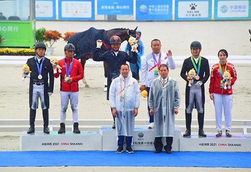 9月18日,廣東隊騎手顧兵與“東哥”組合奪得盛裝舞步個人賽冠軍,新疆隊蘭超與“Sergio Leone”獲得亞軍,上海隊張紅釗與“I DO”位列第三。