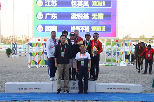 9月21日,西藏隊奪得馬術(shù)三項賽團(tuán)體冠軍,亞軍和季軍歸屬于上海隊和廣東隊。個人賽冠軍被代表中國參加?xùn)|京奧運(yùn)會的江蘇選手包英鳳收入囊中,廣東隊隊員梁銳基、西藏隊隊員格桑平措獲得亞軍和季軍。