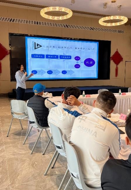 協(xié)會(huì)誠(chéng)邀國(guó)際馬聯(lián)星級(jí)裁判懷佩忻老師為盛裝舞步和三項(xiàng)賽隊(duì)員準(zhǔn)備了專業(yè)豐富的干貨技能。解析盛裝舞步的打分標(biāo)準(zhǔn),讓隊(duì)員教練員從裁判角度出發(fā),鎖定賽場(chǎng)實(shí)戰(zhàn)的成績(jī)突破;以實(shí)際比賽視頻為例,細(xì)致入微地講解重點(diǎn)動(dòng)作要點(diǎn)和評(píng)分標(biāo)準(zhǔn);針對(duì)巴黎奧運(yùn)會(huì)資格分配、MER要求等進(jìn)行規(guī)則解讀,并以東京奧運(yùn)會(huì)馬術(shù)賽事監(jiān)管經(jīng)歷,分享奧運(yùn)會(huì)級(jí)別賽事參賽的注意事項(xiàng)和作為運(yùn)動(dòng)員參賽的重點(diǎn)難點(diǎn)。協(xié)會(huì)搭建的技術(shù)、體能等復(fù)合專家團(tuán)隊(duì)的專業(yè)保障將為新周期奧運(yùn)備戰(zhàn)助力護(hù)航,筑牢隊(duì)員以“贏”為目標(biāo)磨練技能。